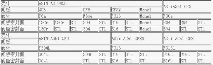 可供材質:不銹鋼、奧氏體不銹鋼、304不銹鋼、316不銹鋼、304L不銹鋼、316L不銹鋼、321不銹鋼、CF8不銹鋼、CF8M不銹鋼、CF3不銹鋼、CF3M不銹鋼、鑄鋼、碳鋼、WCB碳鋼、LCB低溫碳鋼、合金鋼、WC6合金鋼、WC9合金鋼、C5合金鋼、C12合金鋼、、蒙乃爾