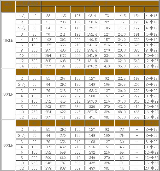 美標升降式止回閥尺寸表: