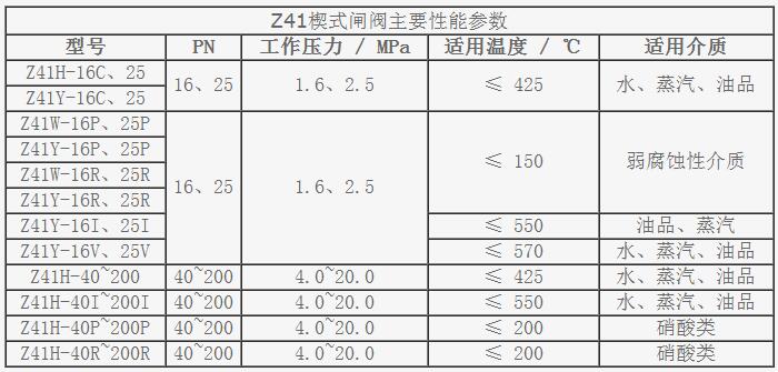 Z41楔式閘閥產(chǎn)品性能參數(shù)
