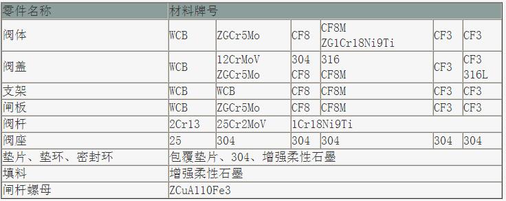 Z41楔式閘閥產(chǎn)品零部件材料