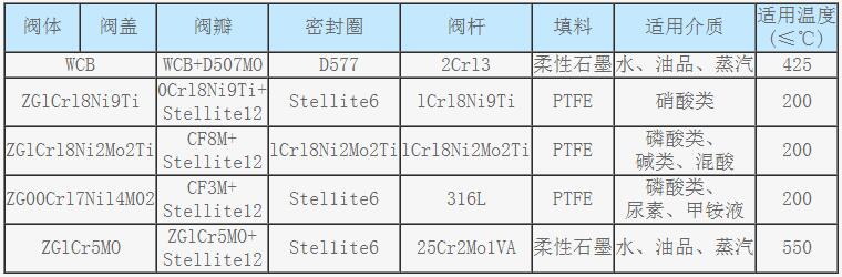 6、閥體材料品種齊全,填料、墊片可根據實際工況或用戶要求合理選配,能適用于各種壓力、溫度及介質工況。