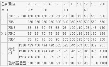 本表中散熱高溫型的重量以PN16為依據,低溫型以PN40為依