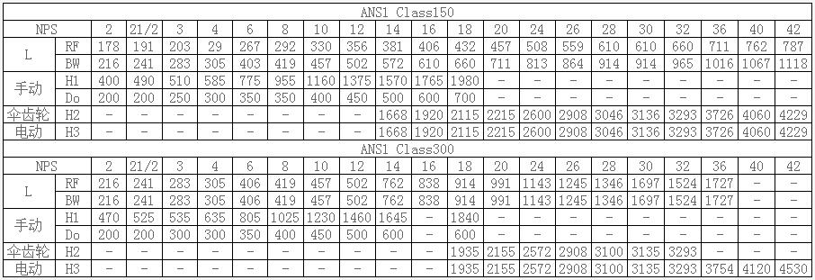 Us standard chrome molybdenum steel gate valves ANS1 Class150~ANS1 Class300 main dimensions: