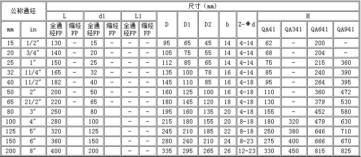 三、Q41H鍛鋼三片式硬密封球閥主要連接尺寸及重量