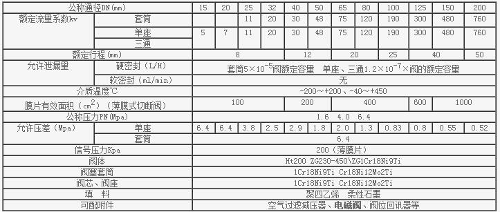 氣動(dòng)薄膜調(diào)節(jié)切斷閥主要性能技術(shù)參數(shù)