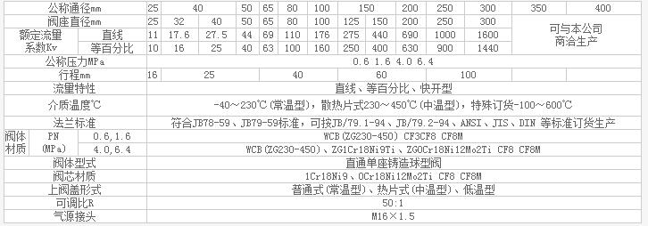 氣動套筒調節(jié)閥主要技術參數(shù)