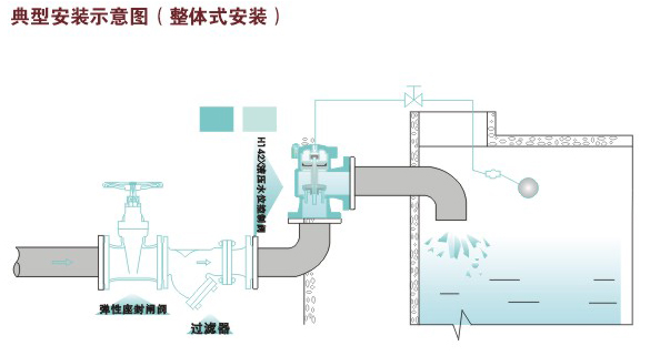 H142X液壓水位控制閥是一種自動(dòng)控制水箱、水塔液面高度的水力控制閥。當(dāng)水面下降超過預(yù)設(shè)值時(shí),浮球閥打開,活塞上腔室壓力降低。活塞上下形成壓差,在此壓差作用下閥瓣打開進(jìn)行供水作業(yè);當(dāng)水位上升到預(yù)設(shè)高度時(shí),浮球閥關(guān)閉,活塞上腔室壓力不斷增大致使閥瓣關(guān)閉停止供水。如此往復(fù)自動(dòng)控制液面在設(shè)定高度,實(shí)現(xiàn)自動(dòng)供水功能。